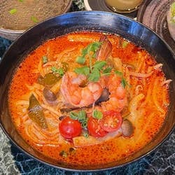 タイの人気スープ麺「クイッティアオ・トムヤムクン」は、海老の旨味とハーブの香りが溶け込んだ、...